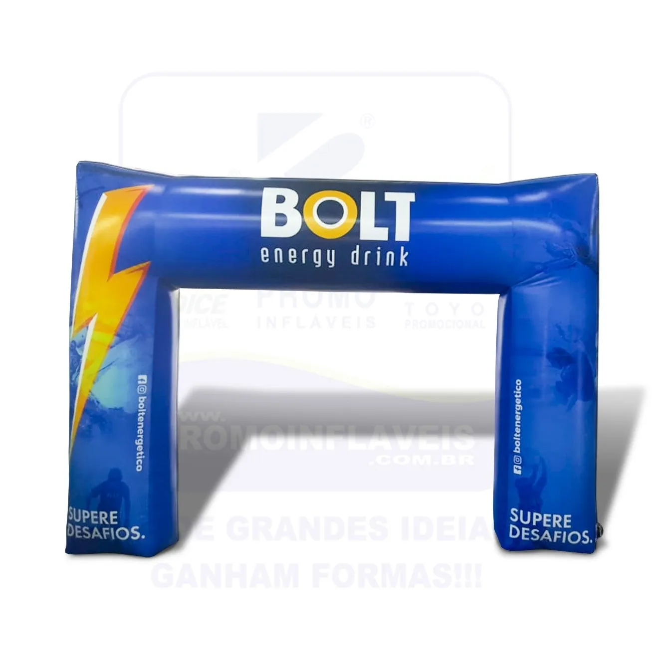 Materiais de PDV em formato de portais gigantes, desenvolvidos para ações promocionais, eventos e ativações em pontos de venda. Produzidos em material resistente, criam entradas impactantes e reforçam a presença da marca em grandes espaços.